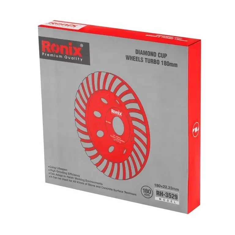 -طراحی سگمنت به روش توربو برای پرداخت های شفاف و براق - -پوشش رنج وسیعی از کاربری ها از نوع برش خشک یا تر -تولید شده از مواد اولیه با کیفیت بالا برای افزایش دوام و طول عمر -بدنه فولادی دقیق و متعادل که لرزش و ارتعاش را کاهش داده و کنترل بیشتر روی دستگاه را برای شما فراهم میسازد. -سوراخ های طراحی شده روی صفحه برای افزایش خنک کاری -مناسب استفاده روی دستگاه های فرز