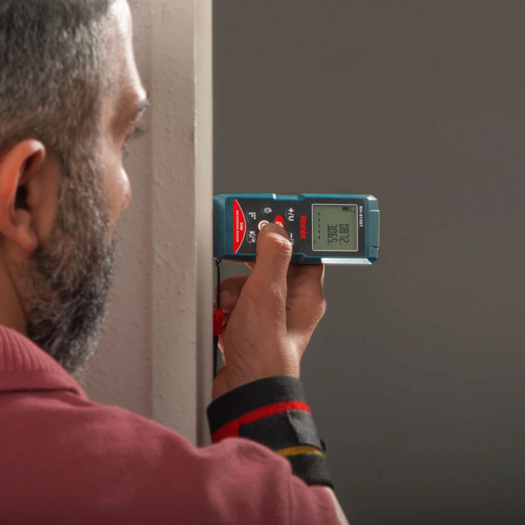 - دارای صفحه نمایش دیجیتالی چند خط درشت نویس با دقت 1.5 میلی متر و قابلیت اندازه گیری تا محدوده 50 متری