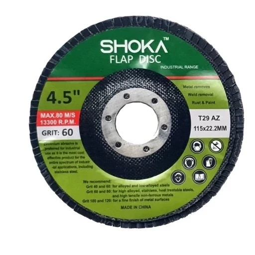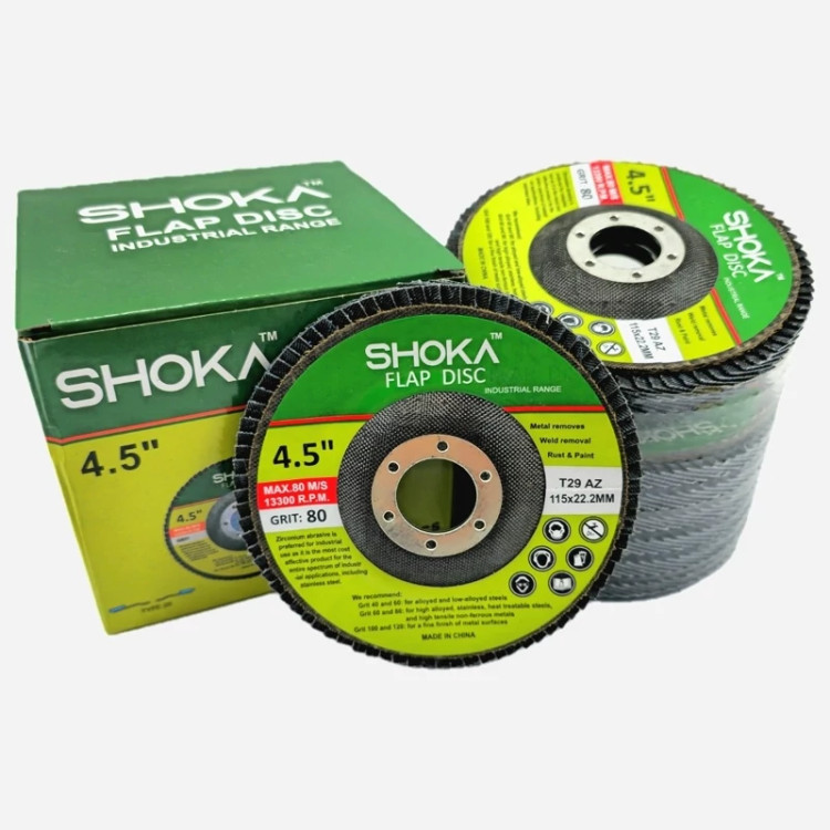دیسک سایشی SHOKA با استفاده از زیرکونیوم به عنوان ماده سایشی تولید میشود که برای کاربردهای صنعتی بهصرفهترین انتخاب است. این دیسک برای طیف گستردهای از کاربردهای صنعتی، شامل فولاد ضد زنگ، ایدهآل است. این محصولات با تحمل سرعت و دور موتور بالا، عملکردی عالی در حذف فلزات، جوش و زنگ و رنگ و همچنین پرداخت نهایی سطوح فلزی دارند.
